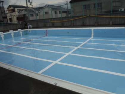 デッキブラシやスポンジたわしでこすって、きれいになりました。
