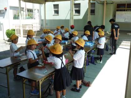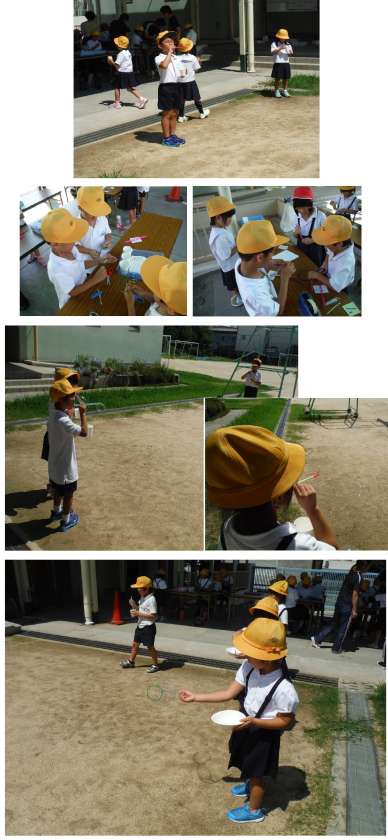1年生が生活科で「シャボン玉遊び」をしています。使う道具(ストローやモールなど)に改良を加え、シャボン玉のでき方を工夫します。イメージを実現できたかな。