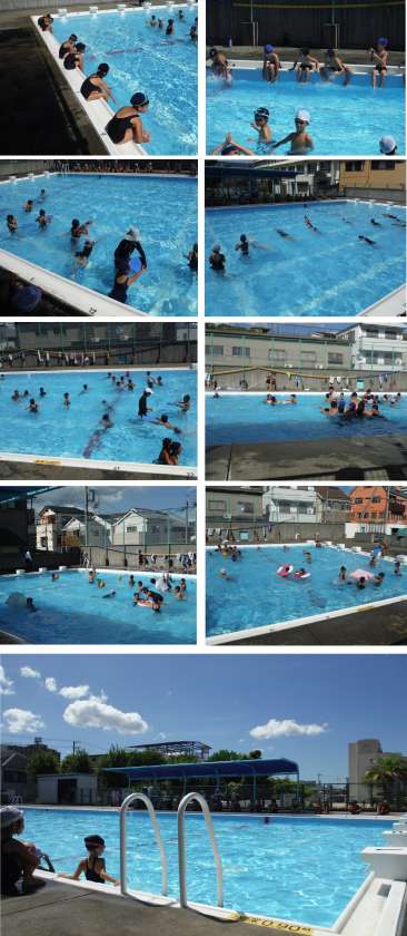 1年生から3年生のプール納めです。低学年でも「水に顔をつけられる」「けのびからのバタ足で5m泳げる」などの基準で泳力テストをしました。これで、本年度の水泳学習は終わりです。去りゆく夏と水泳学習を惜しみつつ、低学年では、お楽しみの時間をちょっと多めにとっていました。