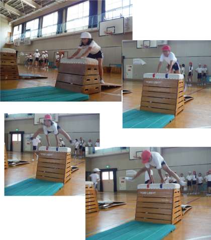 今回は、「手をしっかりつく・足をしっかり開く」ことに重点を置いて練習していました。どの児童も時間いっぱい、積極的に練習していました。