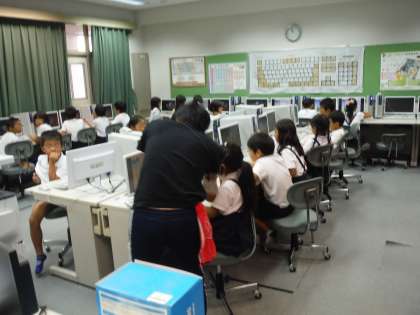 パソコンレッスンです。画面の立ち上げができたら、キューブキッズというソフトを開いて、お絵かきなどをします。楽しそうでした。