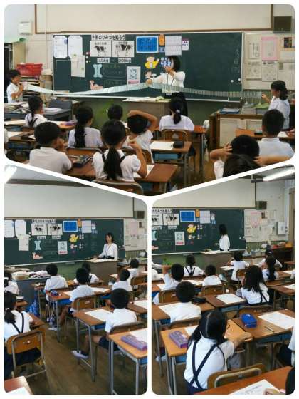 3年生がカルシウムの働きについて学習しています。牛乳に含まれるカルシウムの量を視覚化した模型に、子どもたちは驚きの声を上げていました。