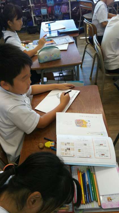 国語のワークシートつづりを整理しています。「サーカスのライオン」で気に入った場面を表紙にかいていました。