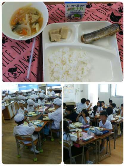 【ごはん・牛乳・さんまのさんしょう焼き・すまし汁・高野どうふの煮もの】