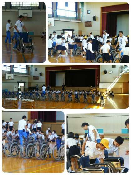 4年生が車いすにつて学習しています。まずは車いすの構造や使い方について教えてもらいます。