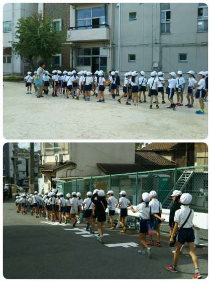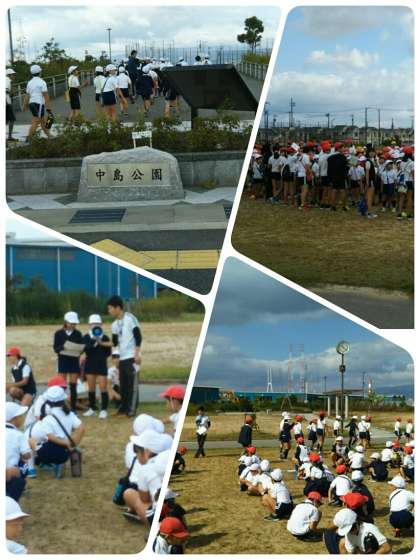 今日は、全校たてわり活動のオリエンテーリング実施日です。学年ごとに運動場に集合し、道中の安全に気をつけて中島公園に向かいました。