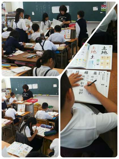 書写プリントを使用して硬筆の学習をしています。筆で書く時のように「とめ・はね・はらい」に気をつけてゆっくり丁寧に書きます。とても集中していました。