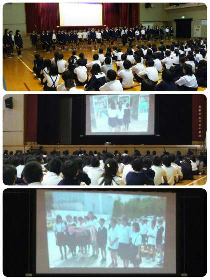 本日は、6年生の平和学習のまとめの報告会です。平和について学んだことや、修学旅行での慰霊祭の様子と、全校児童の祈りがこもった折り鶴を届けたことを話しました。最後に、平和の祈りを込めた「春よ来い」のリコーダー演奏を聞かせてくれました。