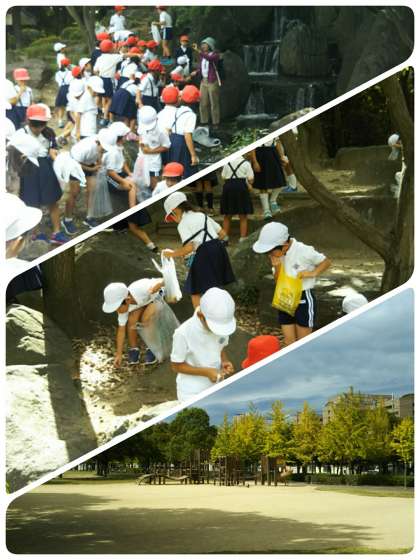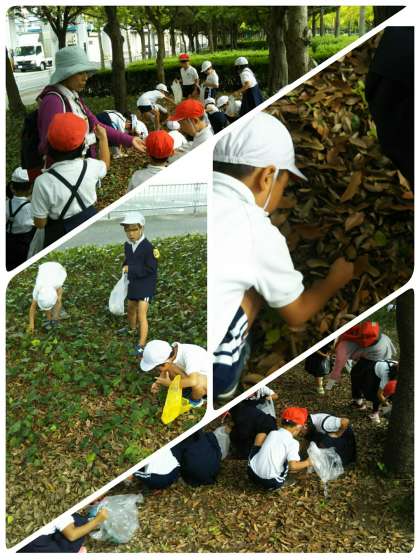 小田南公園に移動して、本格的にどんぐり拾い開始です。「たくさん取れた。」「この殻の中に、どんぐりがあるねん。」などなど、どんぐり拾いに夢中になっていました。