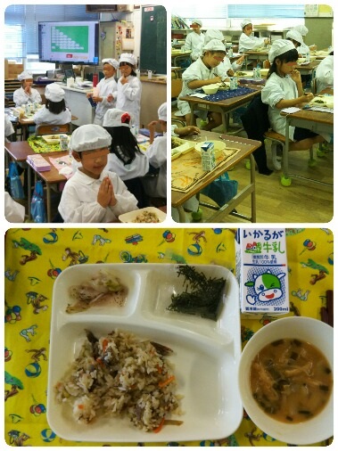 ちらしの牛肉で体を作り、ゴボウの食物繊維でおなかの調子を整える。今日も健康メニューの給食です。