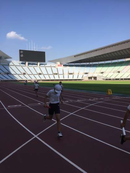 いよいよ競技開始です。他校の人たちと近い距離で顔を合わせて並びます。緊張感が高まってきました。