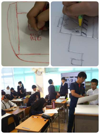 スチレン版画の続きです。いよいよスチレンボードに下絵を描きとがった鉛筆やボールペンで溝をつけていきます。下描きの線からはい出さないよう、気をつけて彫り進めていました。