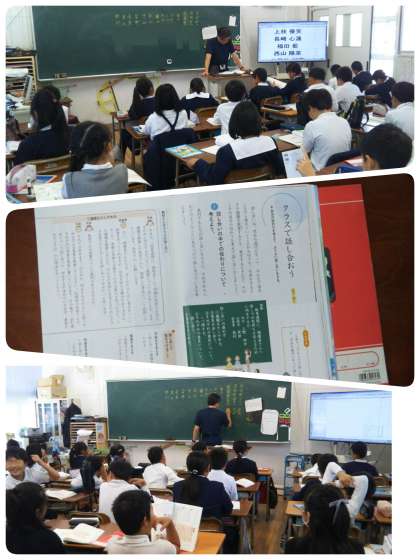話し合いの進め方を学習しています。教科書に登場する人物になって、話し合う場面を体験します。誰がどの役目にあたるか、ちょっとドキドキしている様子でした。