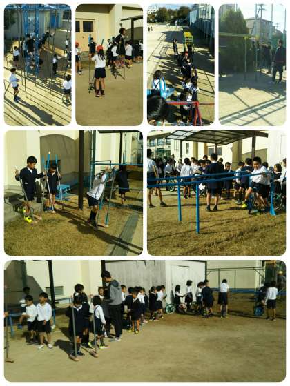 第2日目です。この2日間、大盛況でした。普段遊具で遊んでいる児童も、「チャレンジ」ということで、ちょっと違った気持ちで楽しめたようです。アスレチックチャレンジは、いったん終了となりますが、いろいろな遊び方にチャレンジするようになってくれたら幸いです。