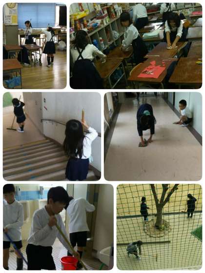 11月の学校生活目標は「学校をきれいにしよう」です。協力して掃除に励んでいます。児童のみなさん、いつもご苦労様。そして、ありがとう。