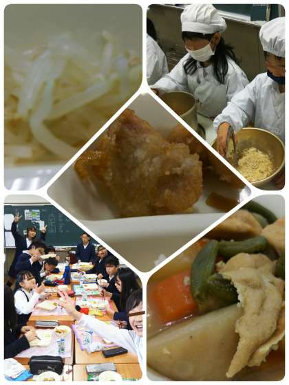 【ごはん・牛乳・あげどりのねぎだれかけ・含め煮・もやしのゆずの香あえ】