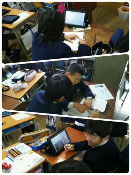 5年生の国語科です。タブレットで和(日本)の文化について調べています。衣・食・住・その他、気になった文化を掘り下げます。