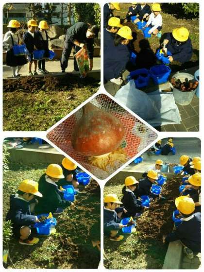 1年生の栽培活動です。チューリップの球根を植えました。(きれいな花が咲いたらいいなあ。)と願って植えました。