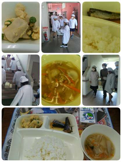【ごはん・牛乳・いわしのしょうが煮・うすくず汁・高野豆腐の卵とじ】