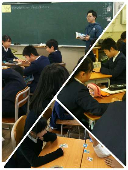 好きな教科(学習)を紹介する内容です。まずは、先生がコールした教科の札を取り合うかるた遊びからです。