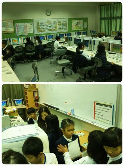 2年生が、九九の暗唱を先生に聞いてもらっています。パソコン操作の練習をしていてもいいそうですが、多くの児童が九九を聞いてもらおうとがんばっていました。
