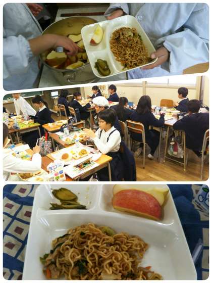 【パン・牛乳・オイスターソース焼きそば・きゅうりの中華あえ・りんご】