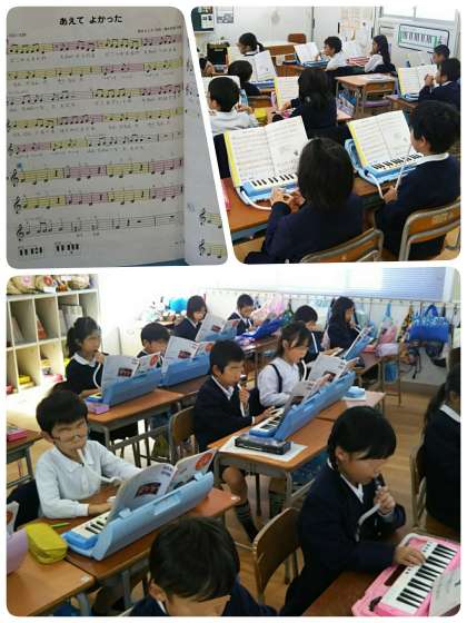 2年生が元気よく歌っていました。途中で鍵盤ハーモニカ演奏にかわります。歌から演奏への素早い切り替えができました。