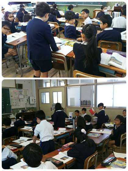 国語科で、物語教材の場面ごとのあらすじをまとめます。自分がまとめて書いた文章をみんなに発表しているところです。