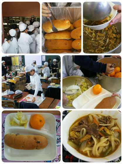 【パン・牛乳・カレーうどん・はくさいの甘酢あえ・みかん】
