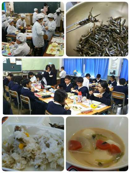 【牛乳・れんこんのちらしずし・ぞう煮・ごまめ】