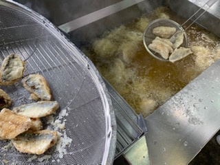 給食室の裏側 公開日 2020/01/16 更新日 2020/01/16 お知らせ 先日のアジのレモンマリネを作っているところです。 レモンは生をしぼっています。それを炒めた玉ねぎに調味料と一緒に入れて、揚げたあじに絡めました。