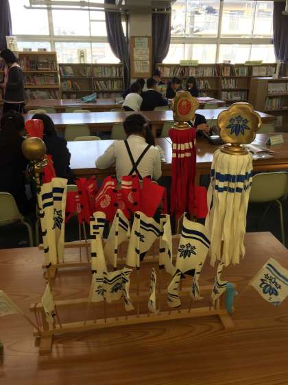 1月16日 旗源平! 公開日 2020/01/16 更新日 2020/01/16 お知らせ 図書館補助員さんが、旗源平のセットを持ってきてくださいました。 旗源平 金沢に古くから伝わる遊び。 二手に分かれて2つのさいころを振り,出た目によって相手の旗をとる。 最後に相手の最高位の「まとい」をとった方が勝ち。 さいころの出目によって、取ることのできる旗の数が変わります。児童に大盛況でした。
