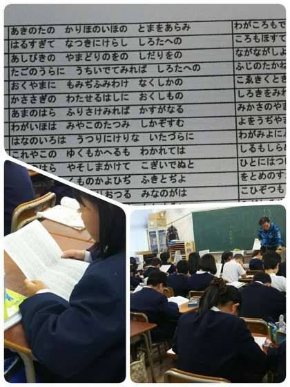 昨日、4年生が百人一首の学習をしていました。歌を一覧表にしたものを使って、代表の児童が詠み上げます。抑揚をつけて詠む声に、日本の文化のよさを感じました。