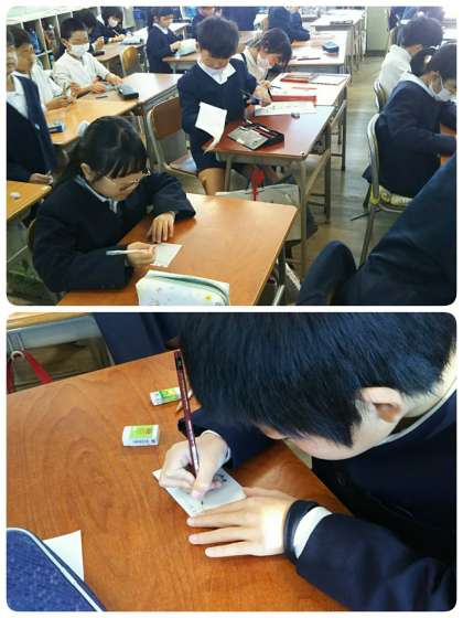 24日(金)から給食週間が始まります。3年生のクラスで、調理員さんへのメッセージカードを作っていました。「いつもありがとうございます」の気持ちをカードに込めます。