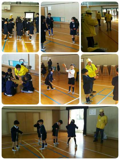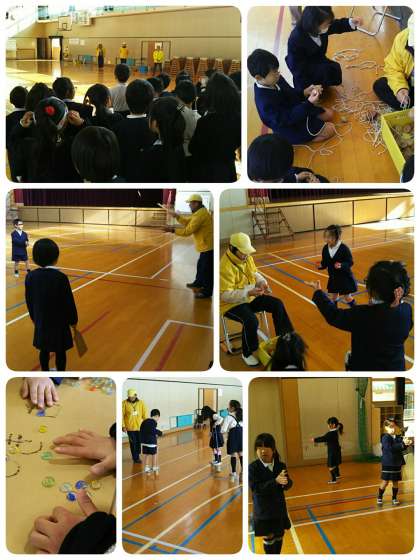 愛育会のみなさんが、昔から伝わる遊びを1年生に紹介してくださいました。