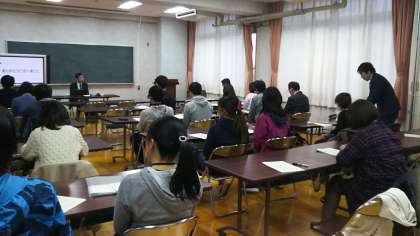 放課後、講師に熊本勝重先生(追手門学院大学非常勤講師)をお招きして、特別支援教育研修会を実施しました。