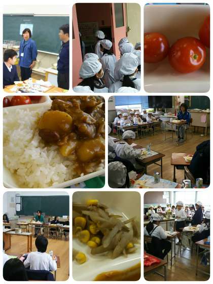 給食週間の初日です。今日は、普段児童とかかわることが少ない職員が、各学級に分かれて給食を食べました。調理員さんも教室に入って食べたので、作った給食を児童が食べる様子をじかに目にすることができました。職員にとって、児童と触れ合える良い時間となりました。