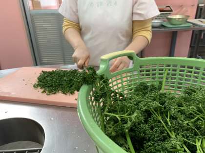 2月3日 給食室の裏側 公開日 2020/02/03 更新日 2020/02/03 お知らせ かぼちゃのプリンの材料です。 コーンスープに入っているパセリは、手作業できりました。一切り一切り、パセリに真心が込められていきます。