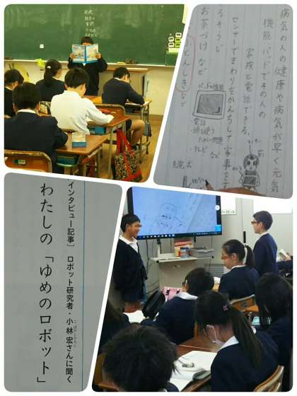 4年生の国語科です。いろんな場面で活躍するロボットを考え、みんなに説明します。ロボットの特徴が伝わるよう、具体的に説明します。