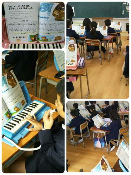 2年生が鍵盤ハーモニカの練習をしています。近々テストがあるようです。児童は、なかなか上手に演奏します。