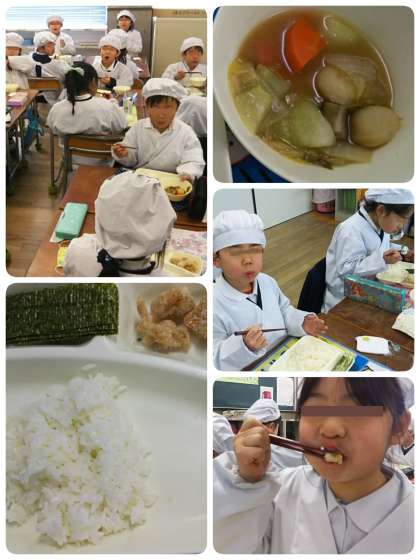 【ごはん・牛乳・鶏肉のからあげ・まる天と野菜のうま煮・焼きのり】