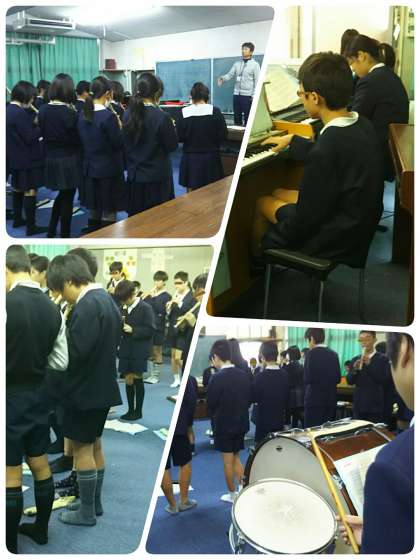 合奏の練習です。ずいぶんまとまった演奏になり、あと少しで完成というところに達しています。祝う会できかせてくれるのが楽しみです。