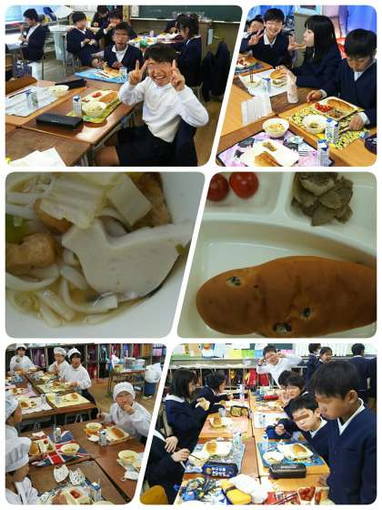 きつねうどんに「とろろこんぶ」をのせて食べるうどんを、給食では「なにわうどん」と呼んでいるそうです。つるつると、のどごしのよいうどんが、とろろが入ることで、さらに滑らかにのど元を通り過ぎていきます。