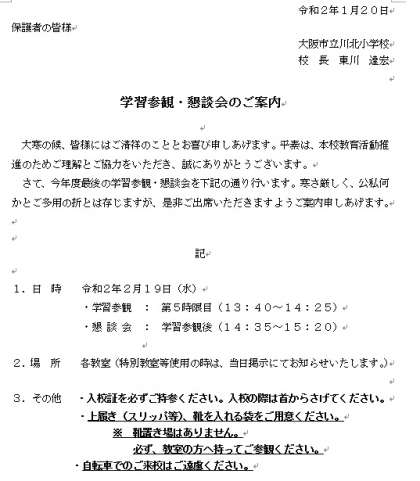 学習参観のご案内(再々)
