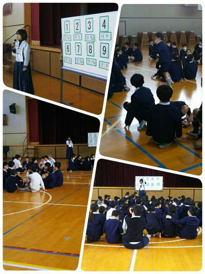 3年生では、韓国語での数の読み方を教えてもらいました。ソンセンニㇺが言った数に合わせて、周りの友達とグループを組むゲームをして楽しく過ごしました。