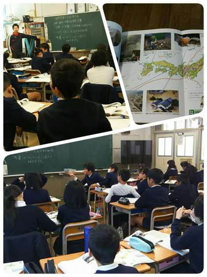 社会科で、日本における自然災害やそれと向き合った生活について学習しています。東日本大震災などの災害を振りふりながら、防災・減災についても考えます。