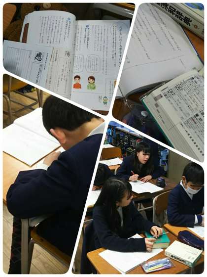 国語科に「卒業生に送る漢字を考える」学習があります。漢字の成り立ちや意味を辞書で調べ、卒業生への気持ちを込めます。
