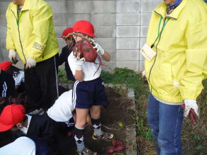 今日は、1年生が川北小農園でお芋堀をしました。風が冷たく寒い中、子どもたちは一生懸命に畑を掘っては、大きな声で「先生見て!こんな大きいお芋さんがとれたよ!」と、とても嬉しそな笑顔をふりまいていたのが印象的でした。