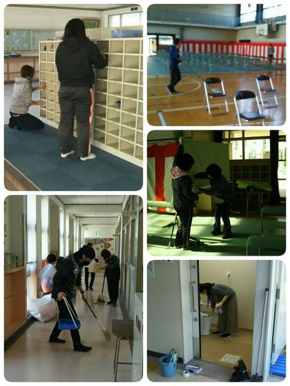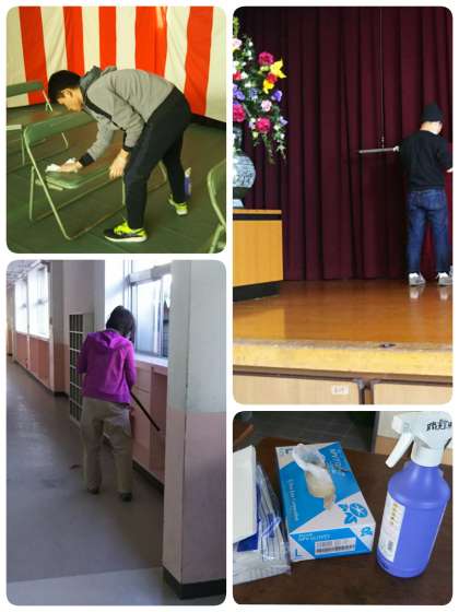 明日の卒業式に向けて、準備をしました。今日の作業は、清掃を中心に行いました。