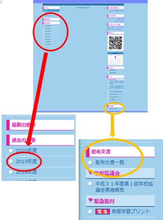 昨年以前のホームページや、ホームページにアップしたお知らせについては、以下の手順で閲覧できます。